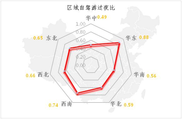 以看出華東地區(qū)過(guò)夜比例普遍偏高,這與自駕出游活躍度、區(qū)域經(jīng)濟(jì)及旅游基礎(chǔ)設(shè)施有著密不可分的聯(lián)系。過(guò)夜比例高,一方面意味著游客有更多機(jī)會(huì)產(chǎn)生消費(fèi)行為,另一方面也可能反映出基礎(chǔ)設(shè)施比如交通和旅游資源分散等原因造成旅行效率不高,因此加強(qiáng)旅游設(shè)施建設(shè),豐富旅游資源,合理設(shè)置消費(fèi)環(huán)境提升游客在停留時(shí)間的旅游收入應(yīng)該是當(dāng)?shù)卣鼮殛P(guān)心的內(nèi)容。